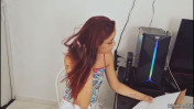 Брюнетка сосёт в спальне