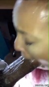 Отсасывает крупный черный член со слюнями
