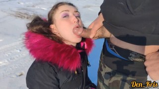 Моя девушка берет в рот зимой на улице