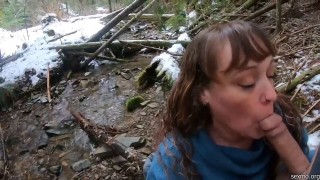 Моя девушка сосёт член в лесу