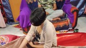 Куколд внимательно смотрит, как киску жены вылизывает любовник