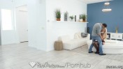 Мужик трахает любовницу на белой постели